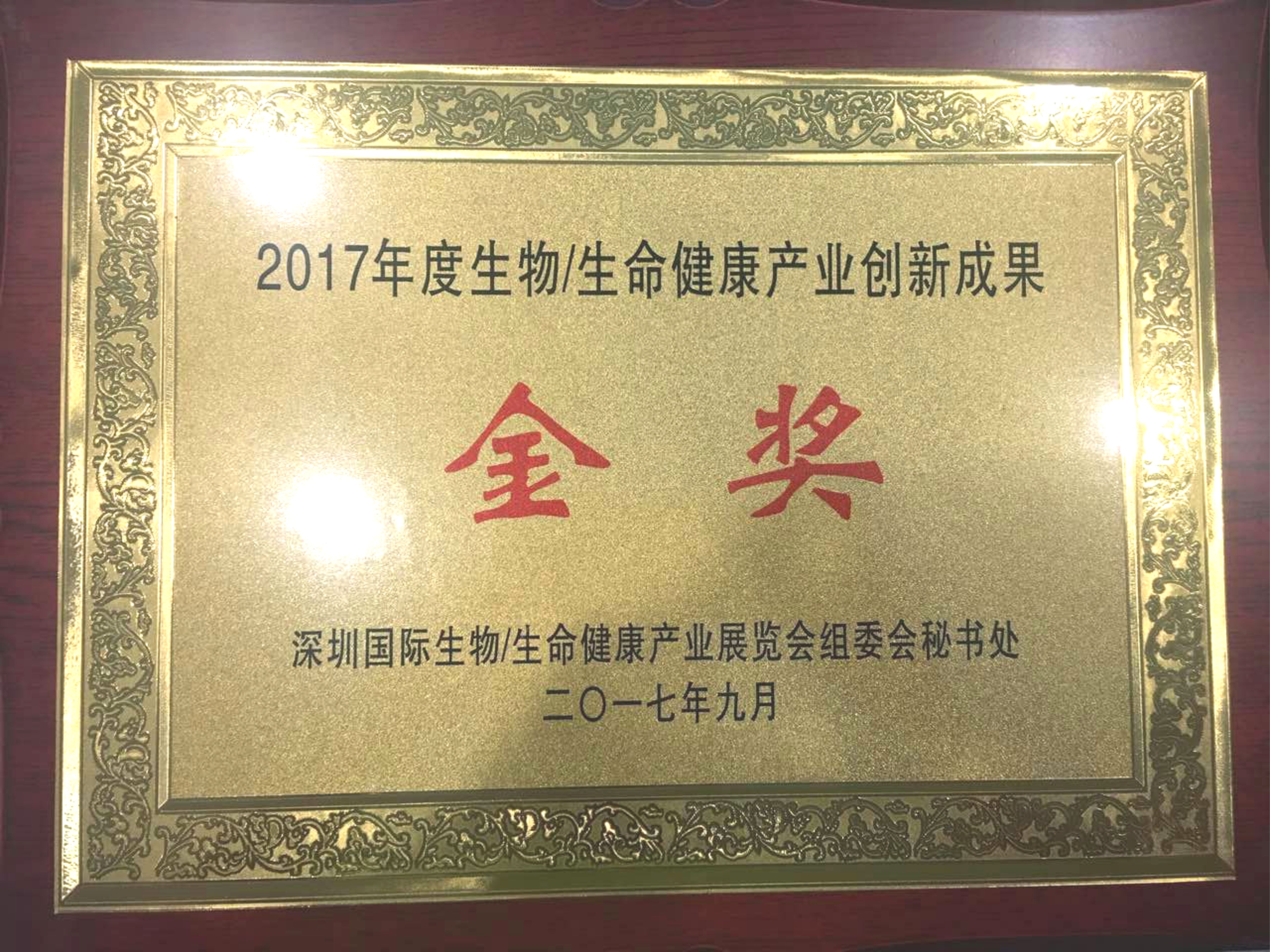 2017年度生物/生命健康产业创新成果金奖